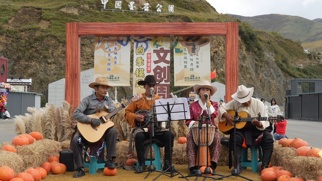 牧人乐队的歌声和道孚服饰走秀更让节日氛围感拉满。之前在网上刷到墨石公园的地貌就很想来,今天没想到还能听到这么地道的藏歌,看这么漂亮的藏装展演!”来自成都的游客陈琳举着手机录下牧人乐队的表演,“尼玛翁姆的歌声一出来,我感受了藏歌的纯美,这种在峡谷里的现场感,比任何演唱会都震撼。”而道孚名道文化旅游发展有限公司品牌营销经理古佳蕾也补充道:“我们特意把7家非遗展示项目及民族乐团和服饰展演放在墨石公园,就是想让‘冷硬’的地质景观和‘柔软’的文化碰撞,让游客记得住道孚的独特。”