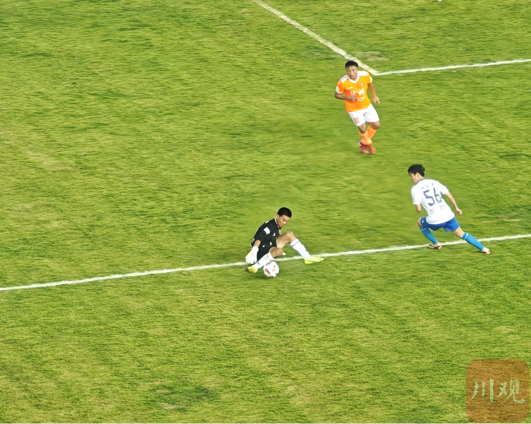 泸州队守门员范德顺无情拒绝自贡队员射门。(图据泸州融媒)