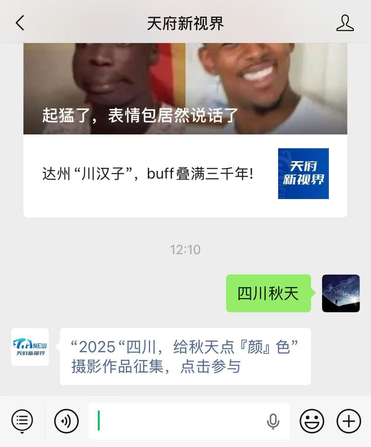 报名方式简单便捷,你可以通过川观新闻客户端相应通道和回复“天府新视界”微信公众号关键词参与报名: