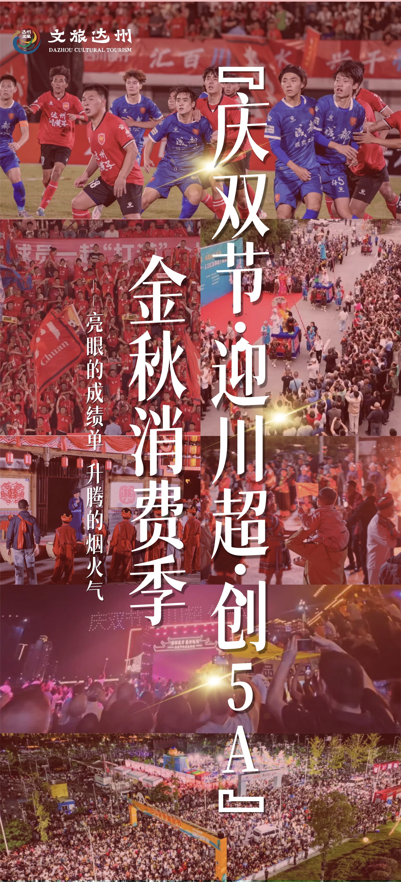达州围绕“庆双节•迎川超•创5A”金秋消费季总体部署,推出川超“三免”及住宿餐饮打折、旅游景区门票减免优惠措施,为拉动消费作出了积极贡献,取得了良好成效。
