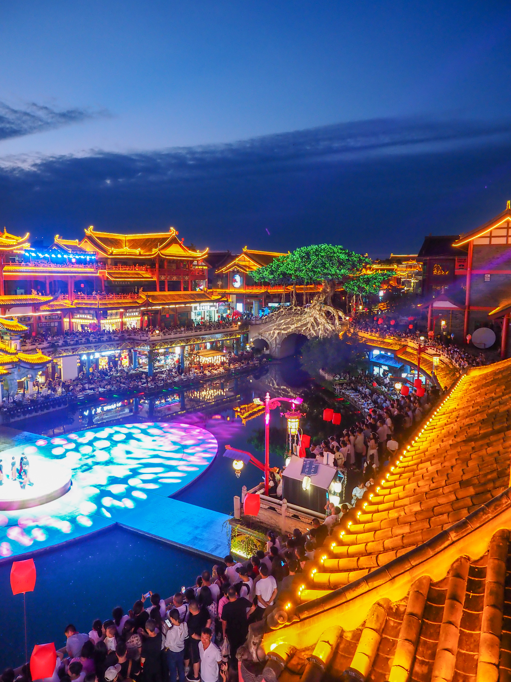 夜幕降临,东坡岛穿越盛世水街灯火璀璨。由东坡区与腾讯公司联合打造的“无忧城・大宋奇妙夜”沉浸式互动演艺,获游客青睐。数据显示,8天水街累计接待游客46万人次。