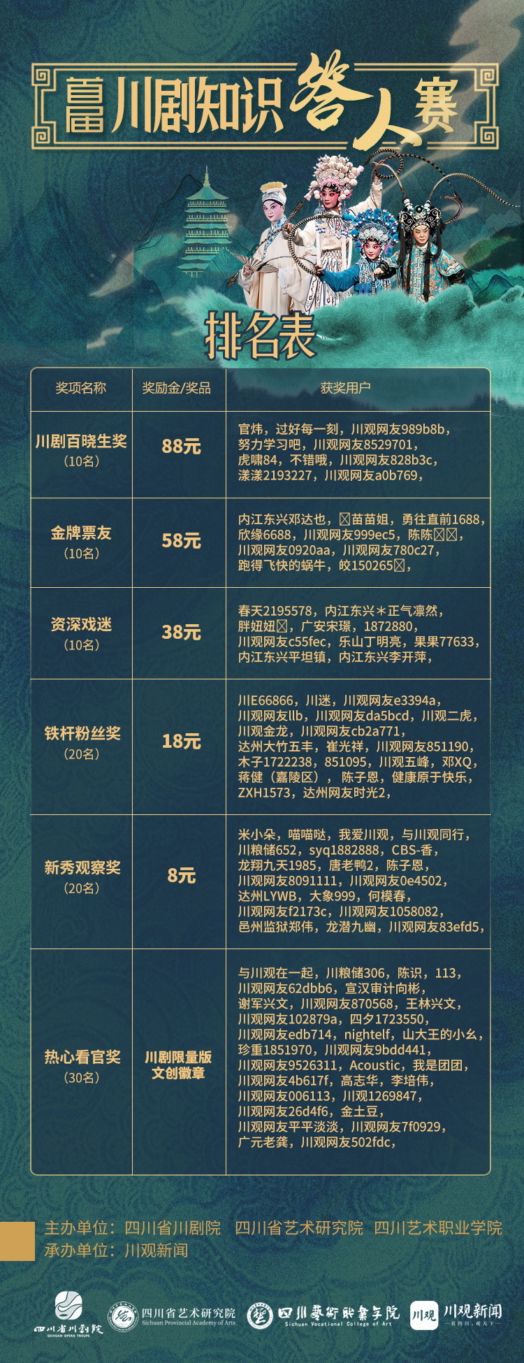 这样的知识竞赛还真的有用,以前我知道川剧变脸,现在我说起川剧“玩友”“打围鼓”“时装戏”四大名丑可谓是头头是道,受益匪浅!