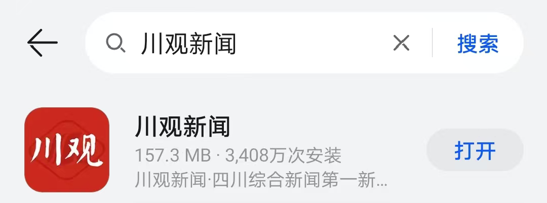 1、进入应用商店或App Store,搜索“川观新闻”,点击下载。