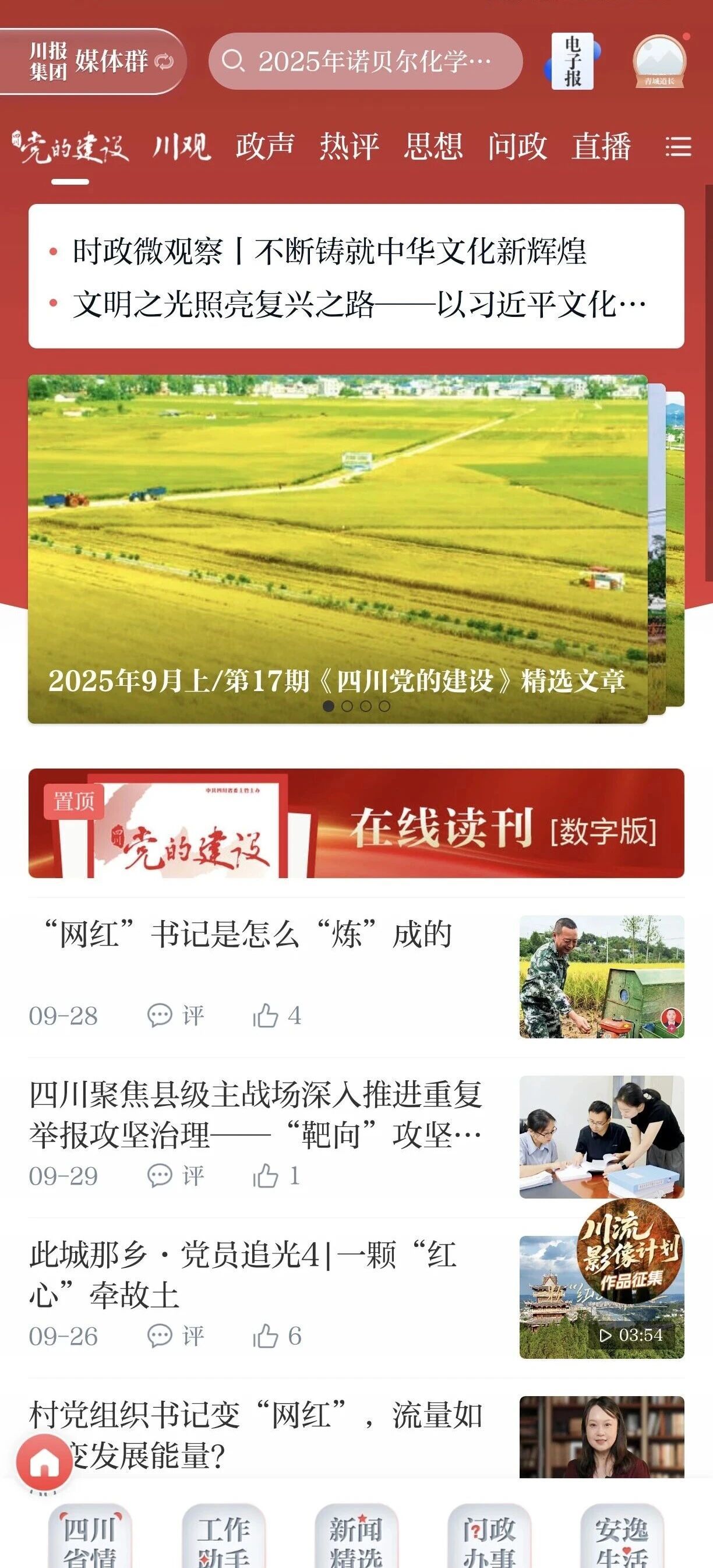 3、选择“四川党的建设”,进入“川观新闻・四川党的建设”平台