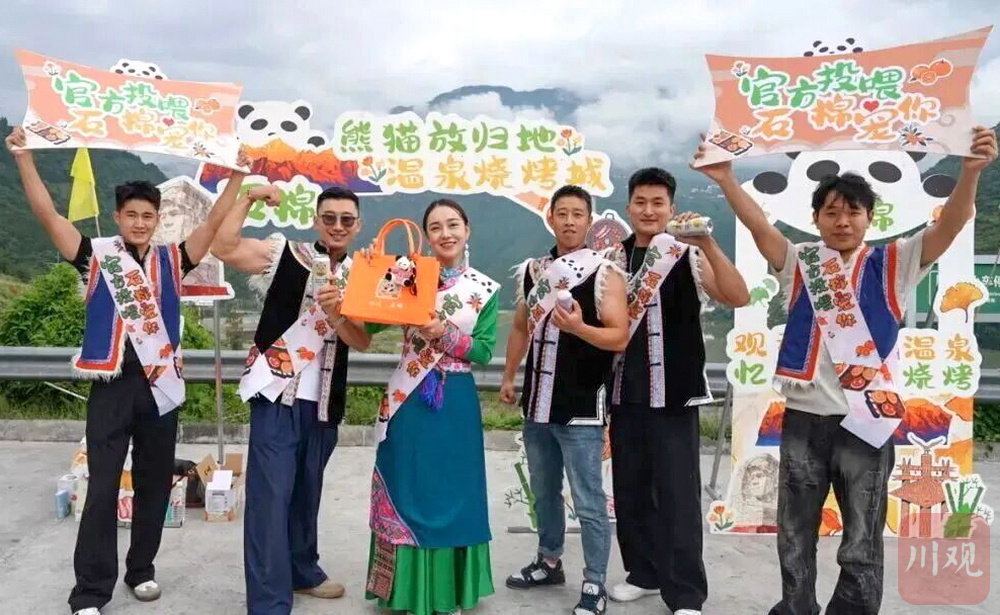 印有“石棉”“熊猫放归地温泉烧烤城”等字样及本地特色景点与美食的打卡墙成为焦点。游客完成拍照打卡后,工作人员将黄果柑啤酒、定制文创包、传统枇杷膏等石棉特色农特产品送到游客手中。据统计,石棉县国庆“投喂”活动首日共派发消费券1000张、黄果柑啤酒180罐、文创包400个、枇杷膏1000条,覆盖游客超千人次。