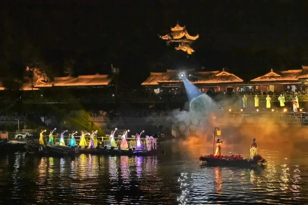 休闲消费场景氛围浓,凤仪湾大舞台每日上演民俗节目,嘉陵江大草原露营成亲子游首选,嘉陵白马湖水街“嫦娥奔月”表演,夜经济氛围浓厚。