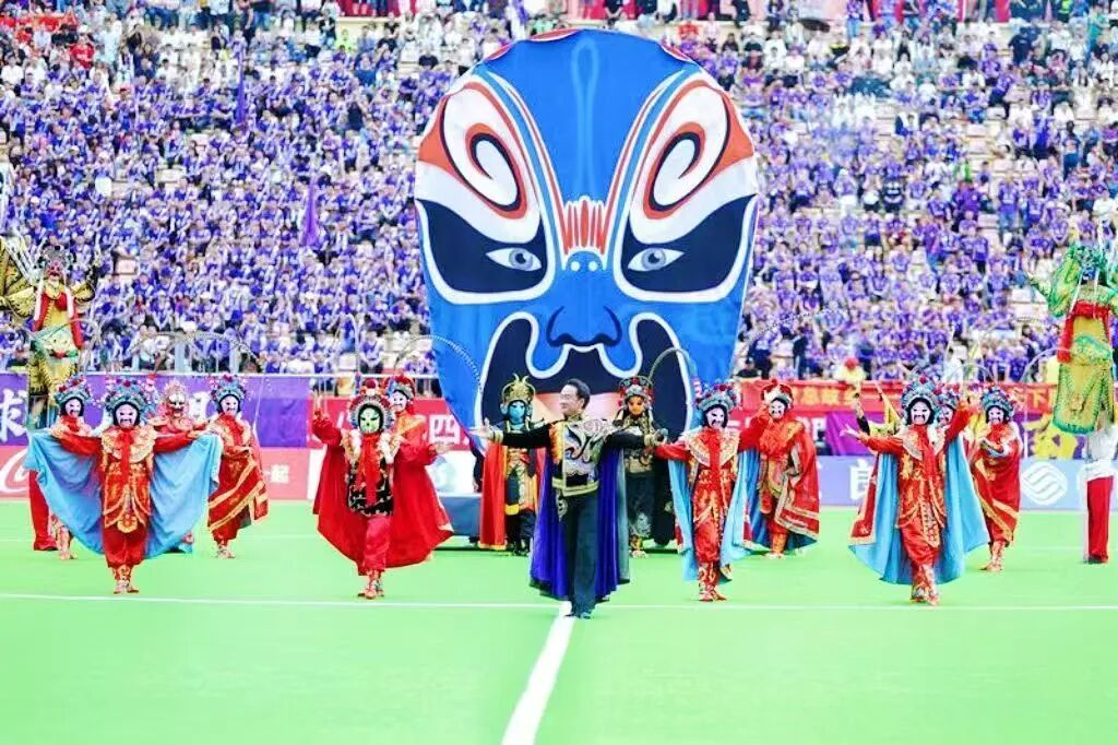 以文化赋能川超赛事,南充文旅创作队歌和特色节目。10月2日川超南充主场,南充文旅特邀著名歌唱家陈小涛助力,319位演员同时变脸大场景,五彩脸谱瞬间变换,场面震撼,观众纷纷拍照。10月6日对战达州场中,创意性呈现“刘关张”三兄弟带领电动车队伍“穿越”互动,收获好评无数。