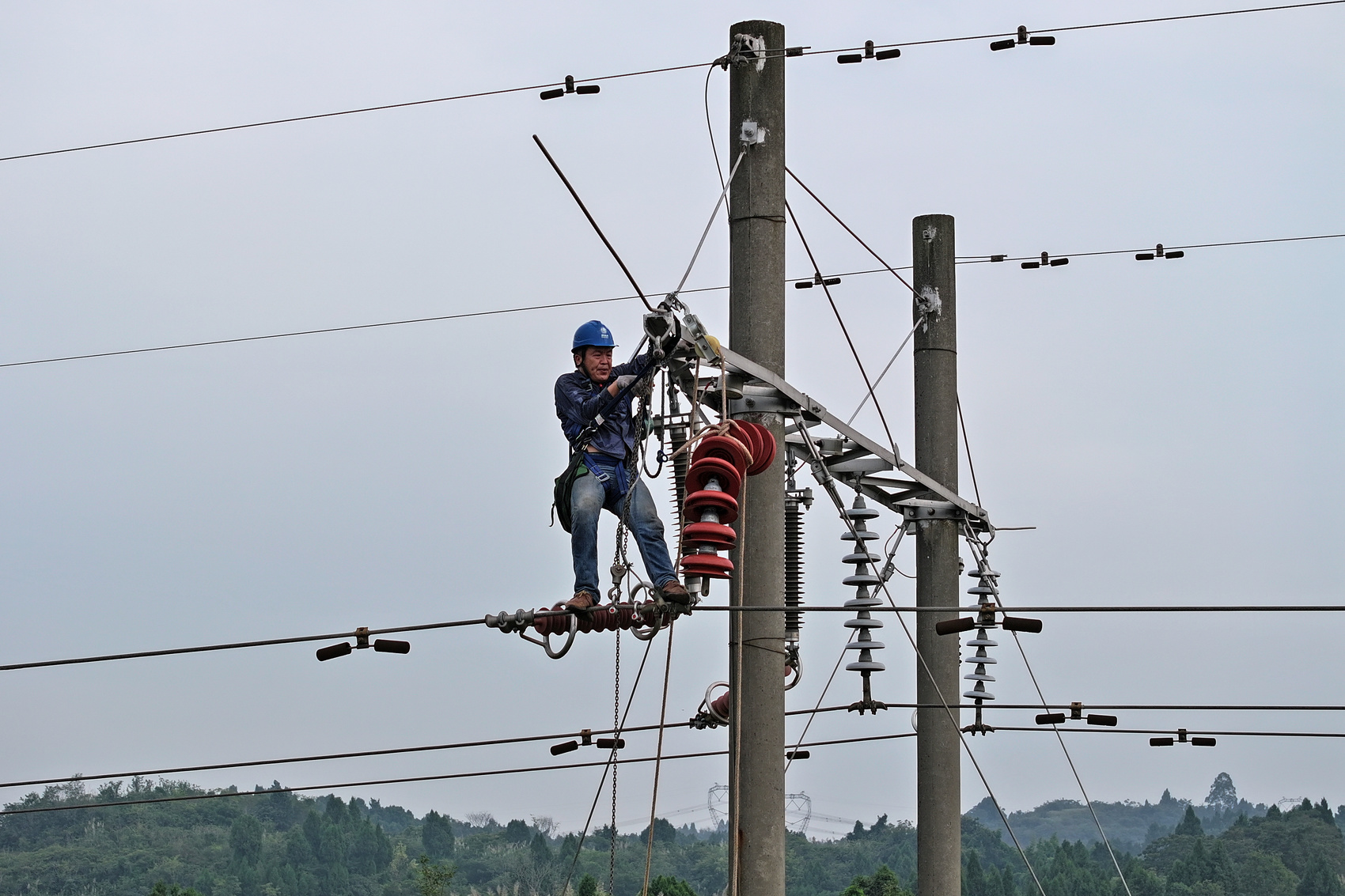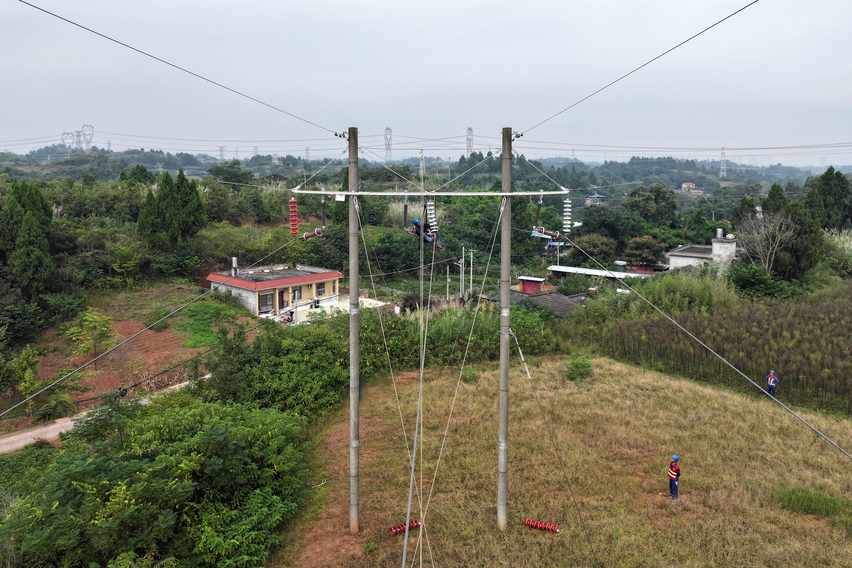 为进一步提升线路供电可靠性,10月10日,在眉山市仁寿县宝马镇高照村,国网眉山供电公司组织13名作业人员对110千伏枣勇线实施绝缘子更换改造。此次工程将全线61基直线杆塔上的普通瓷绝缘子更换为1200片交流盘形悬式瓷复合绝缘子。