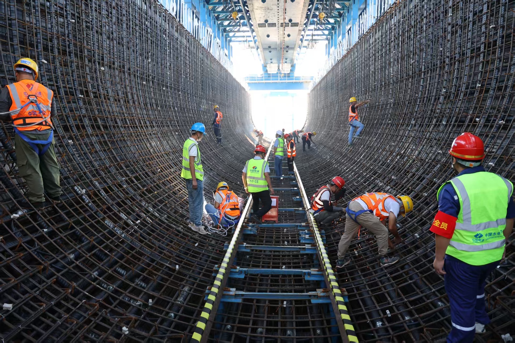 “党建进工地”助力重大项目建设提质增速,图为亭子口灌区一期工程桐子坝渡槽施工现场,工人们正在热火朝天地施工(省委省直机关工委供图)