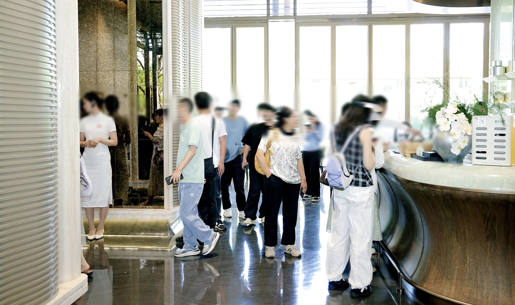 长假期间,越秀·湖与白售楼部购房者络绎不绝。