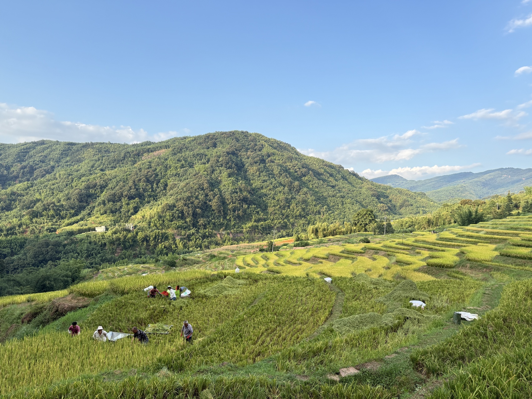 泸州叙永县丘陵坡地“中医水稻”收获。受访者供图