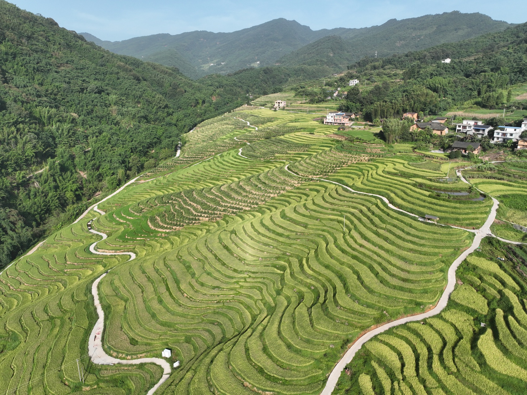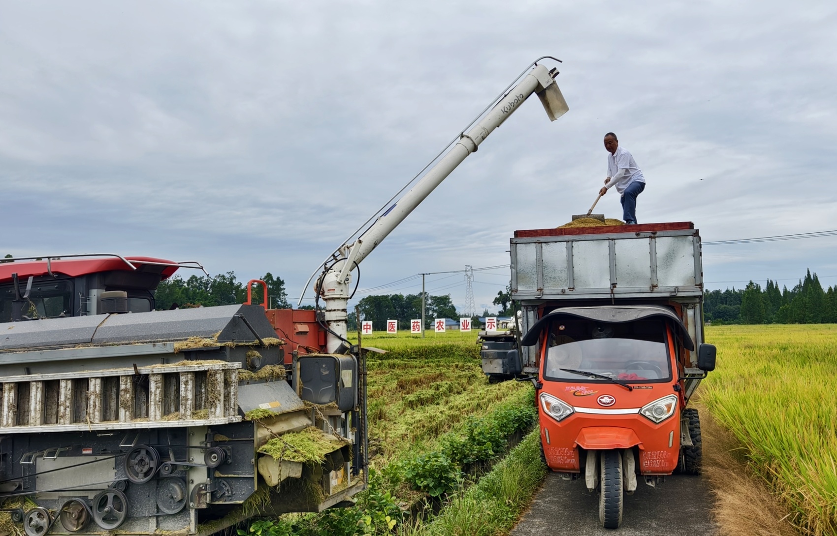 崇州市白头镇安顺社区“中医水稻”迎收获。罗敏/摄