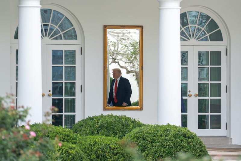 10月10日,在美国首都华盛顿,美国总统特朗普返回白宫。新华社记者 胡友松 摄