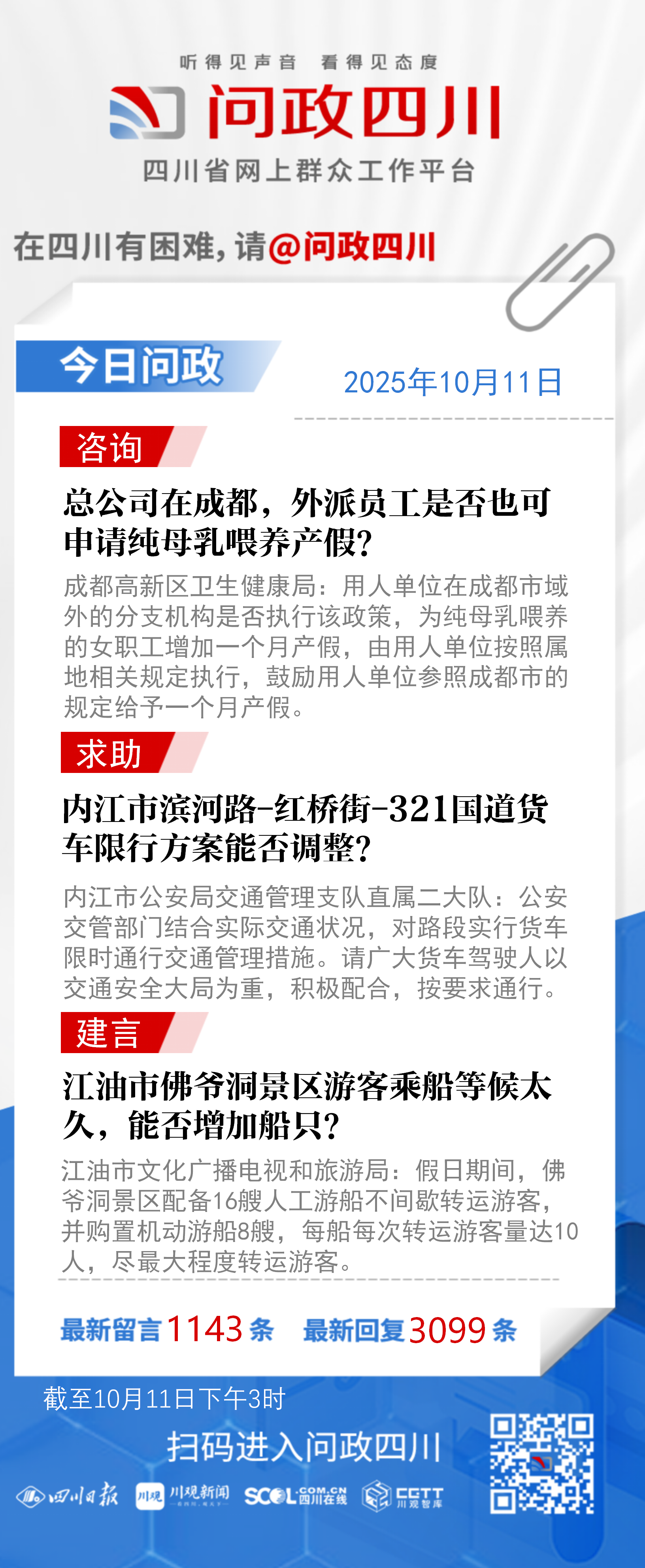 问政四川网友提问:自2025年7月开始,内江市东兴区学院路与滨江路检查路口经红桥街至321国道,该路段货车限行时间从之前17:30-19:30调整至17:30至22:00,给货车司机带来了极大的不便利,能否调整?