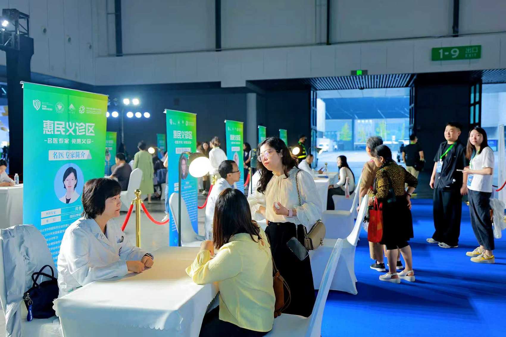 “前沿技术馆”和“医药创新馆”间,2000余平方米的“惠民空间”划为等候区、导诊区和咨询区,靠背椅子、暖色灯光、科室指示牌、专家名片……泌尿科、呼吸科、骨科、慢病管理科等科室有序排开,来自华西医院、省人民医院等的知名专家坐诊。
