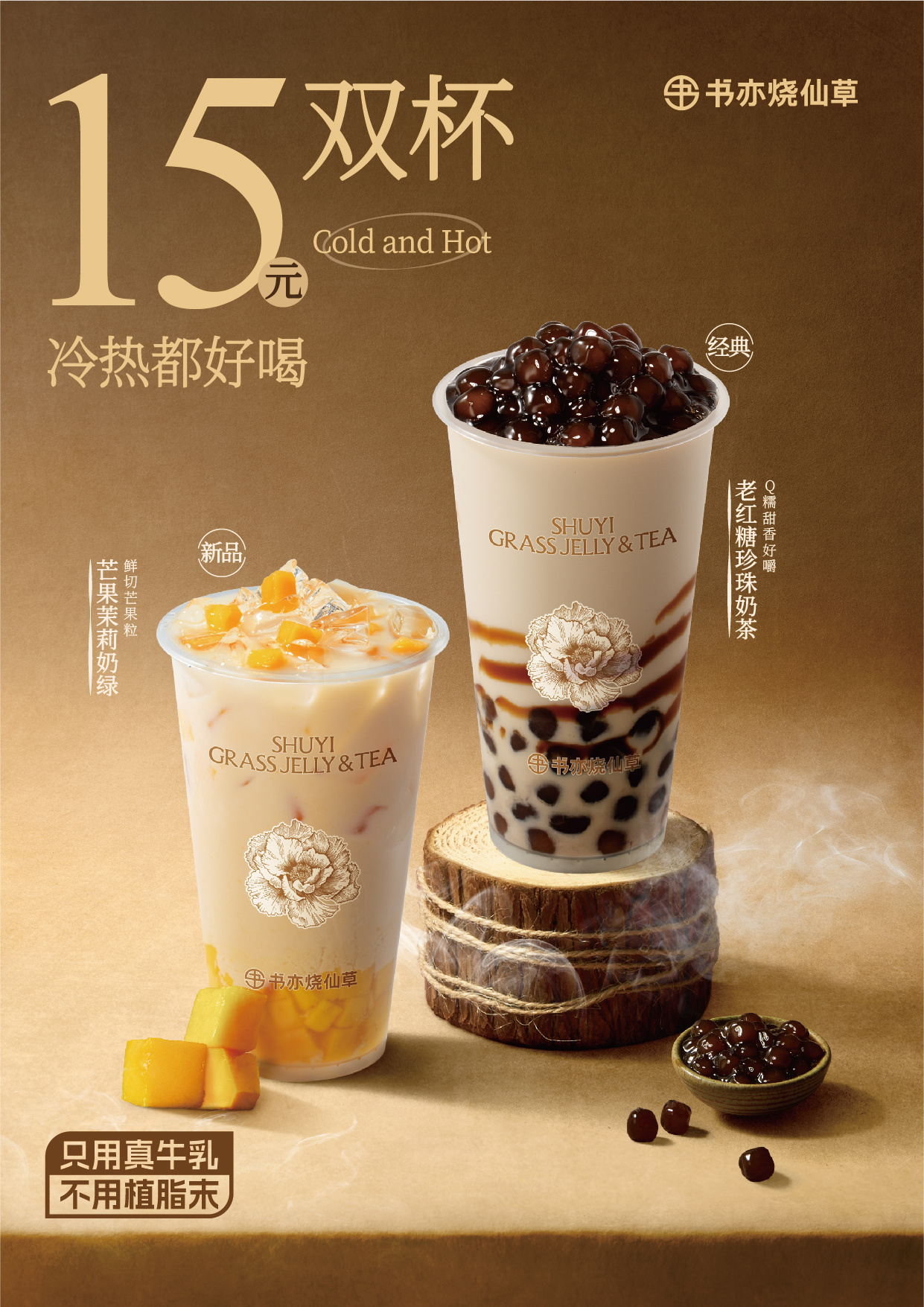 现泡茉莉绿茶搭配HPP新鲜夏黑葡萄汁和健康纯牛乳,口感清爽不腻,吸一口果香、茶香、奶香香溢满口,这就是新中式茶饮品牌书亦烧仙草推出的果茶新品——葡萄茉莉奶绿。葡萄茉莉奶绿因其清新的口感、过硬的品质、售价10元的超高性价比,一经上市便获得近150万杯销量与90%好评率口碑的 “双丰收”。经典热销产品茉莉奶绿和薄荷奶绿,清新的茉莉绿茶风味为整杯主基调,搭配醇香真牛乳,茶香与奶香结合,轻盈的口感与今年“热力十足”的长假高温天气适配度拉满,同时8元一杯的售价让消费者感觉超值,也将“好奶好料”的产品心智进一步植入消费者心中。