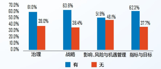 从披露内容看,有66.2%的样本企业采用了财务重要性和影响重要性的“双重重要性”分析框架。而严格按照“治理-战略-影响、风险和机遇管理-指标与目标”(即“四支柱”框架)进行财务重要性议题完整分析与披露的企业仅18家,规范性和深度仍显不足。