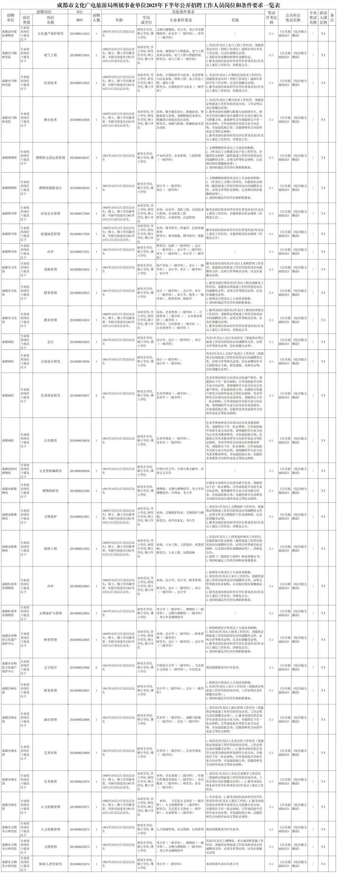 成都市文化广电旅游局所属12家事业单位面向社会公开招聘工作人员34名。