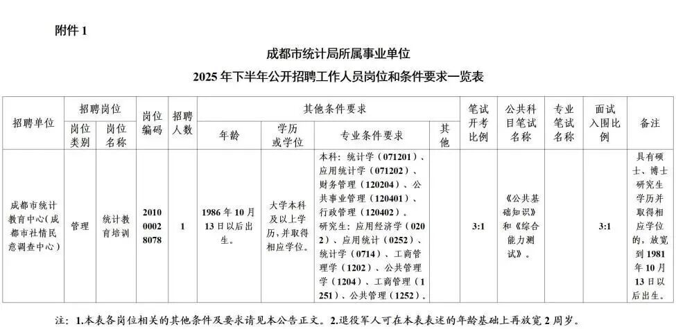 成都市城市运行和政务服务管理办公室面向社会公开招聘工作人员1名。