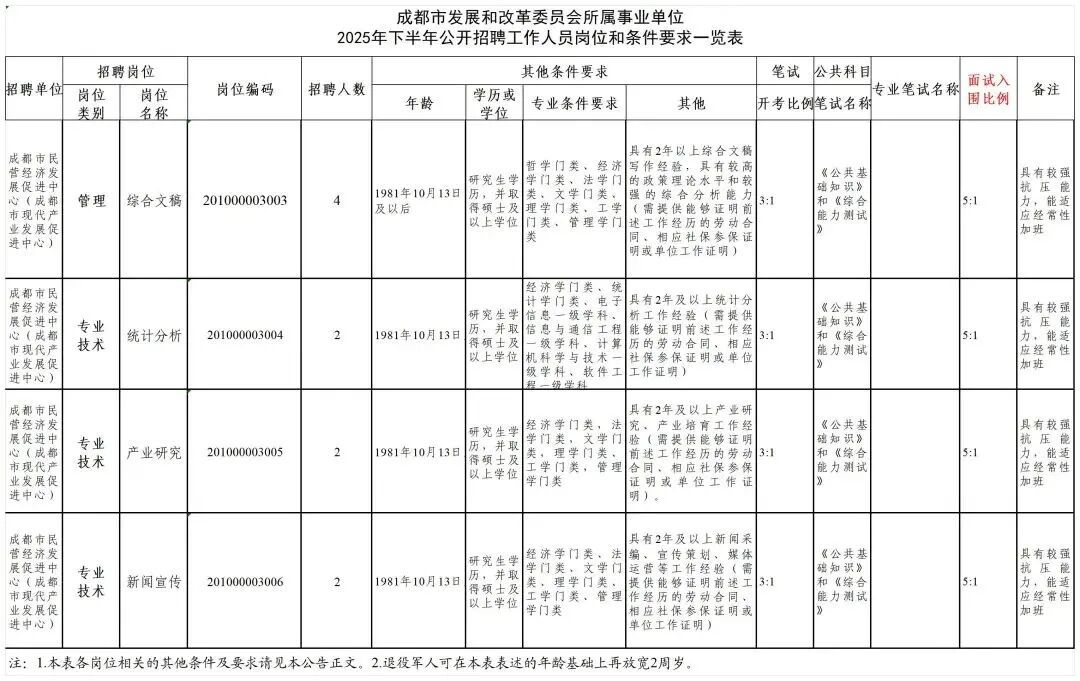 成都市发展和改革委员会面向社会公开招聘工作人员10名。