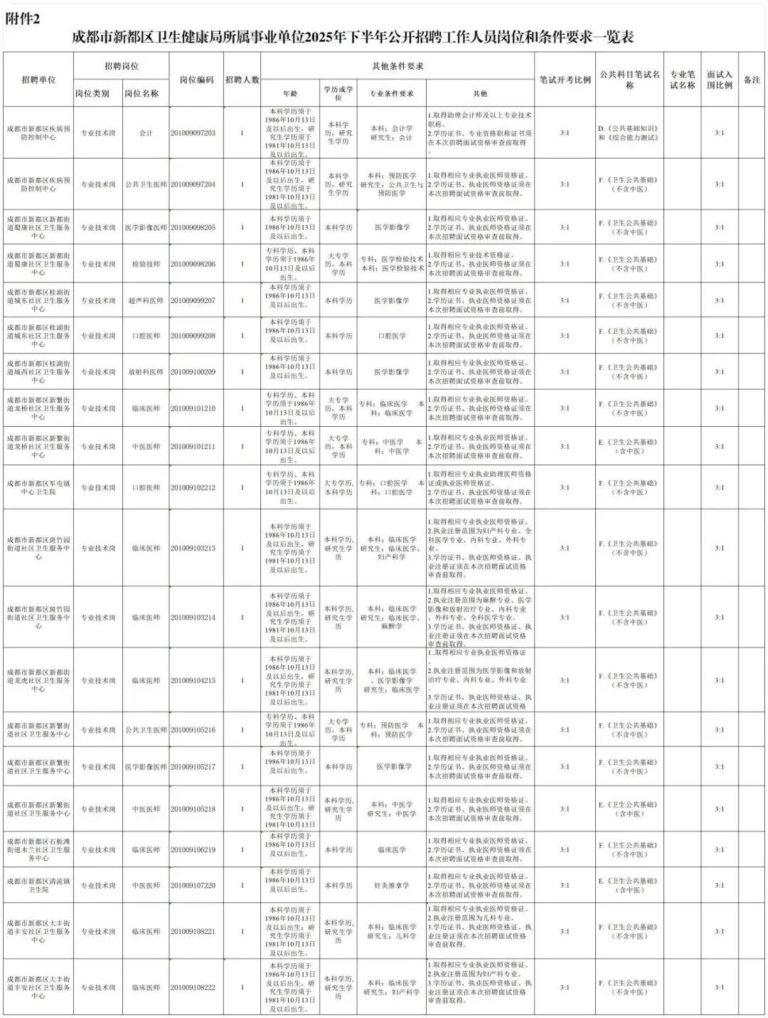成都市新都区卫生健康局所属事业单位面向社会公开考试招聘工作人员20名。