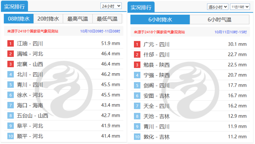 据中央气象台,10日9时到今天15时,四川多个站点登上全国降水量TOP10榜单,主要集中在广元、绵阳、德阳区域,青川县。