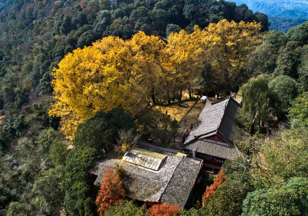 茶文化寻根之旅:国家4A级景区蒙顶山作为世界茶文化发源地,今秋正值银杏泛黄的最美时节。天盖寺红墙与金色银杏相映成趣,游客可在此观赏茶技“龙行十八式”,品尝蒙顶山茶,还可参与秋季限定徒步活动收集特色奖牌。