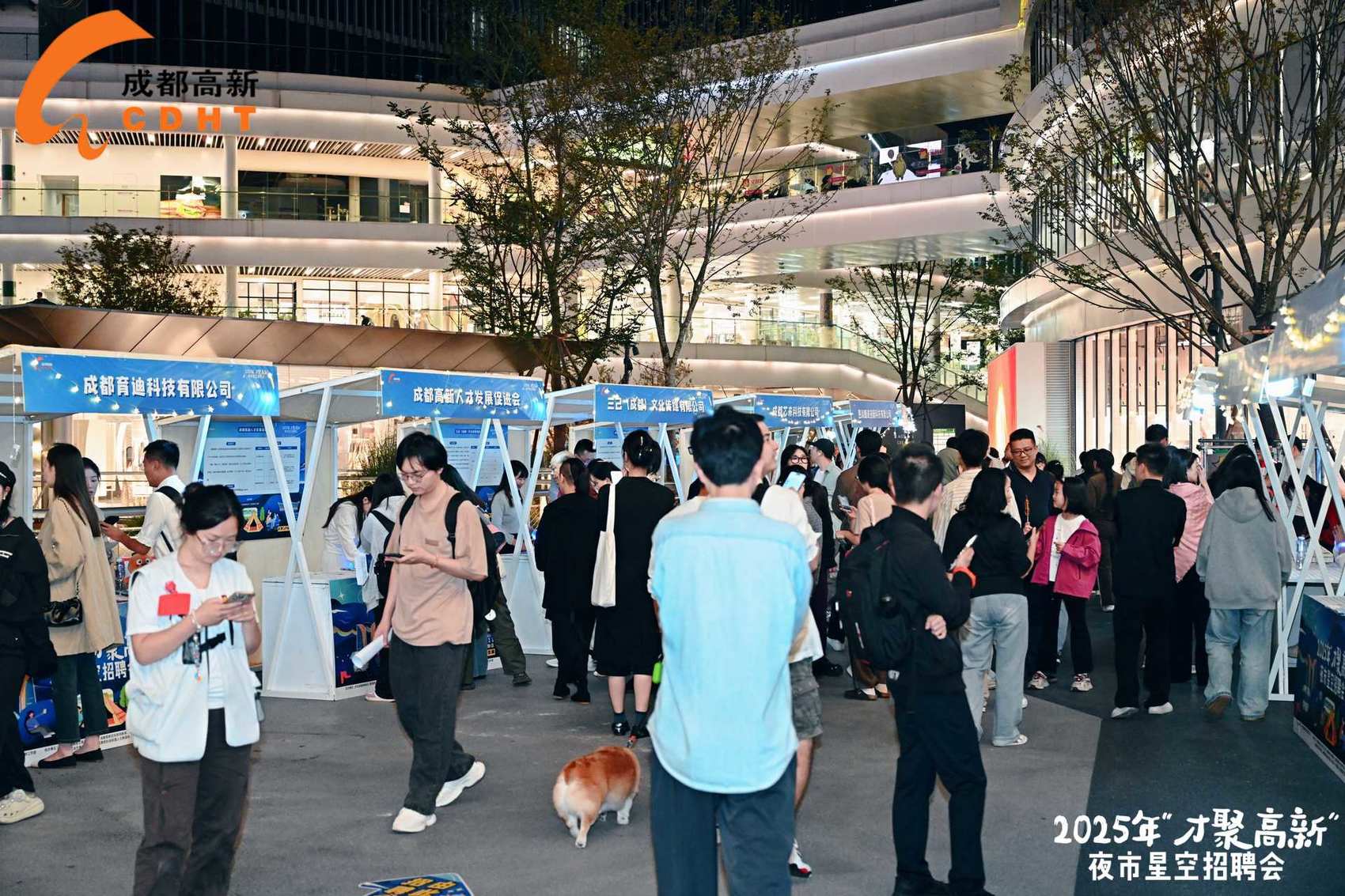 此次招聘会锚定青年群体夜间出行与社交习惯,通过功能分区构建全链条服务体系。在“心动Offer区”,成都高新区电子信息、数字经济、数字文创等重点领域的优质企业,带来超200个岗位,涉及电子工程、软件开发、动画设计等方向;“求职充电区”设 “金熊猫”人才通宣传服务点,提供简历优化、面试培训、简历打印等一站式服务;“活力体验区”则以智慧体育挑战、自行车试骑、糖画制作等趣味项目,搭配咖啡、阅读商户体验,营造轻松氛围。此外,现场还推出“才聚高新”主题荧光手环,求职者凭手环可享园区商户专属优惠。