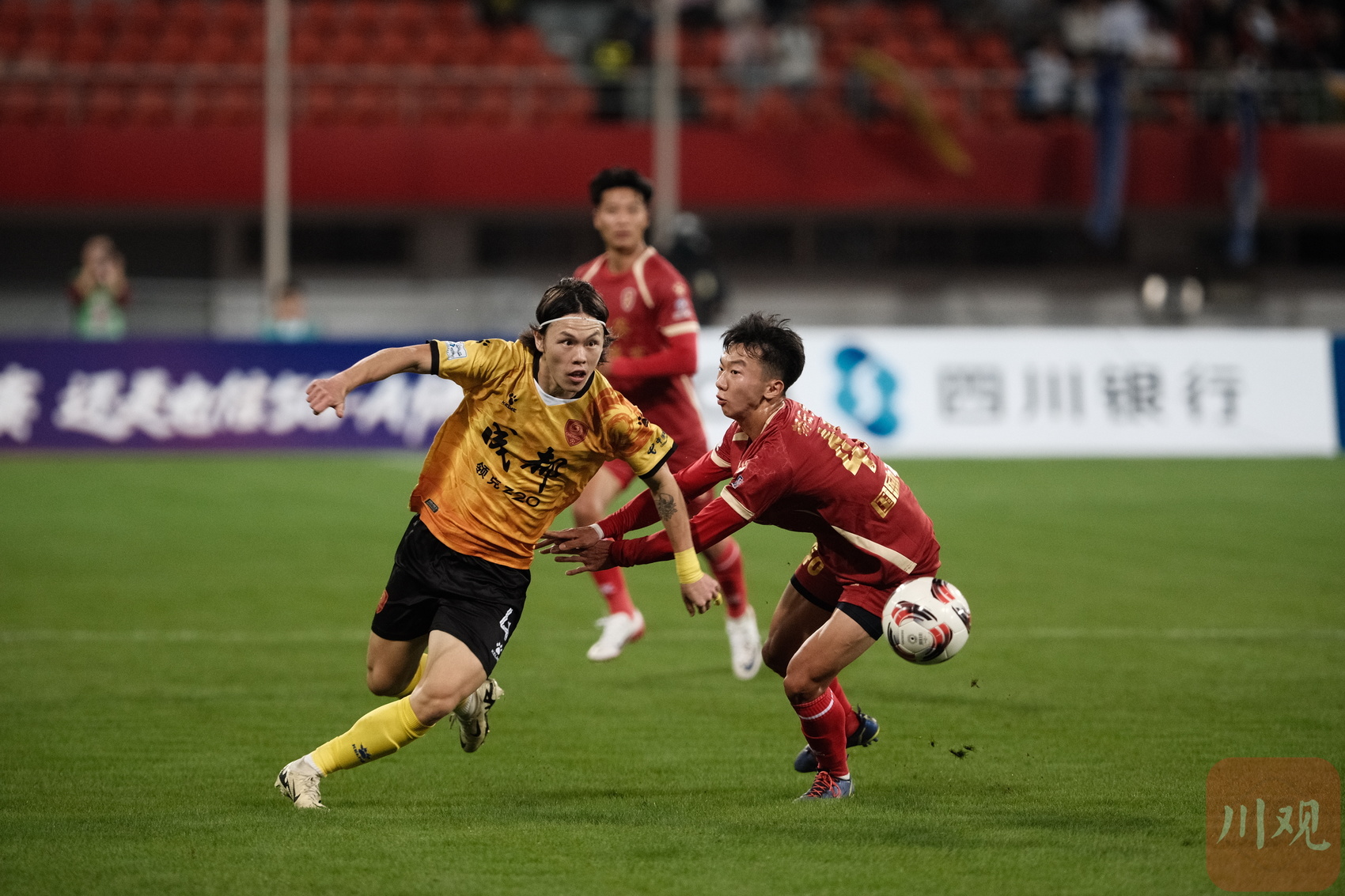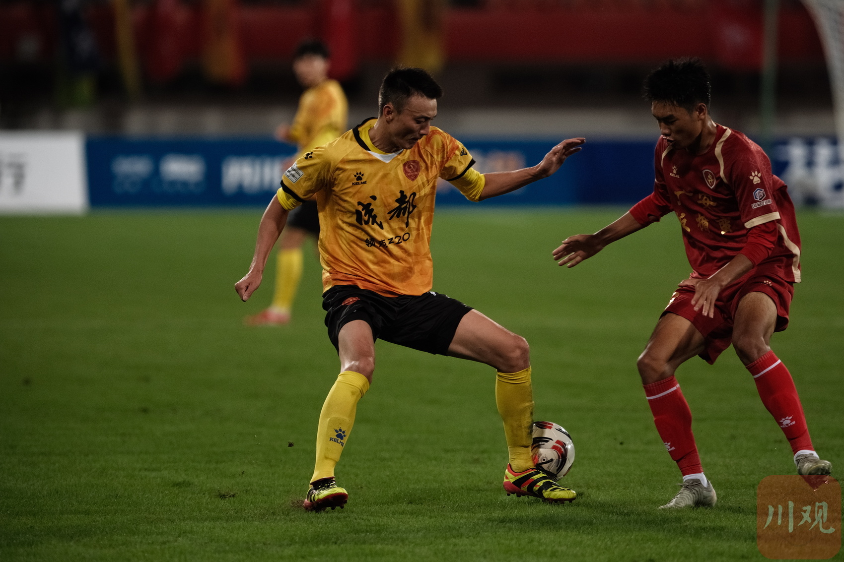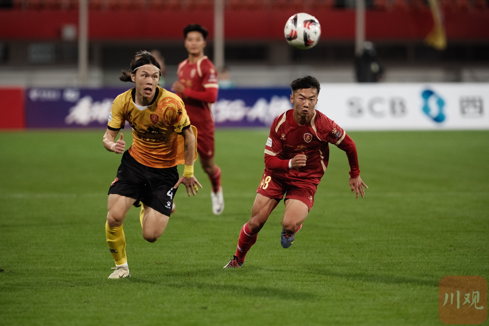 比赛开场仅6分钟,刘毅飞便头球破门为成都队首开纪录。第28分钟,37岁老将黄鹤冷静施射再下一城。全场比赛成都队占据压倒性优势,终场前通过角球锁定胜局,以四战全胜的战绩领跑积分榜。