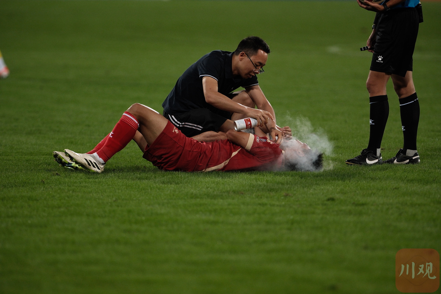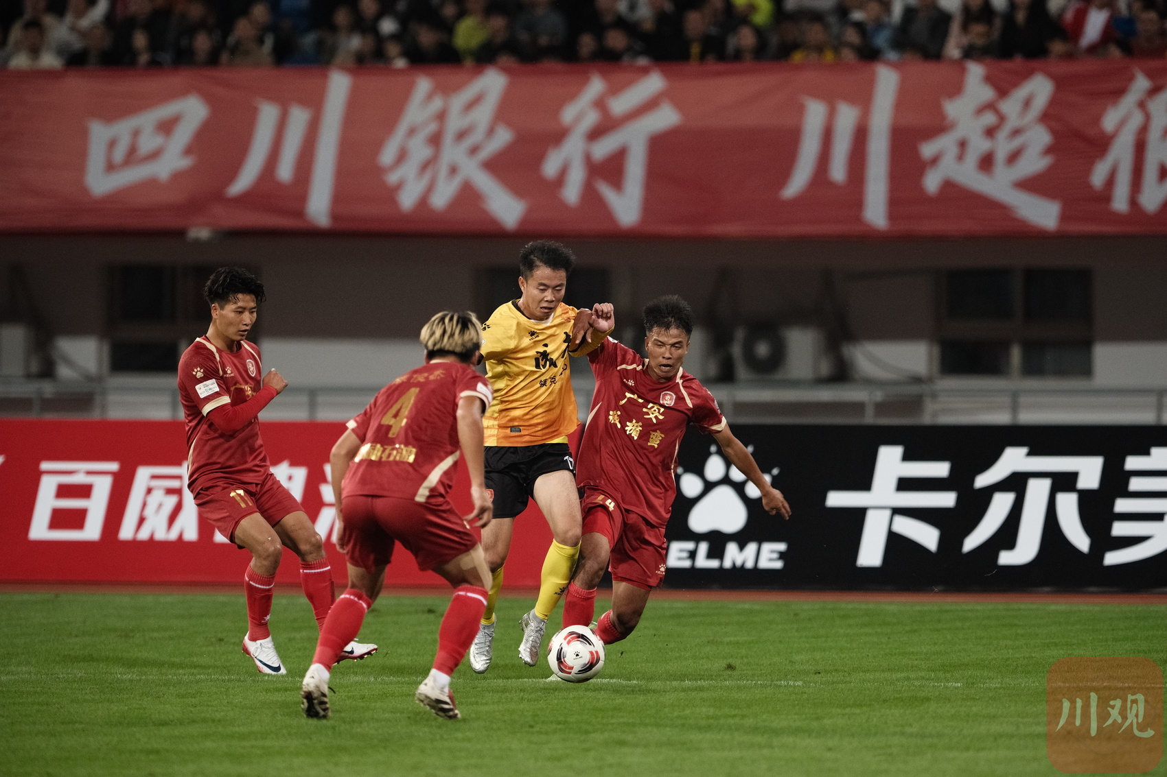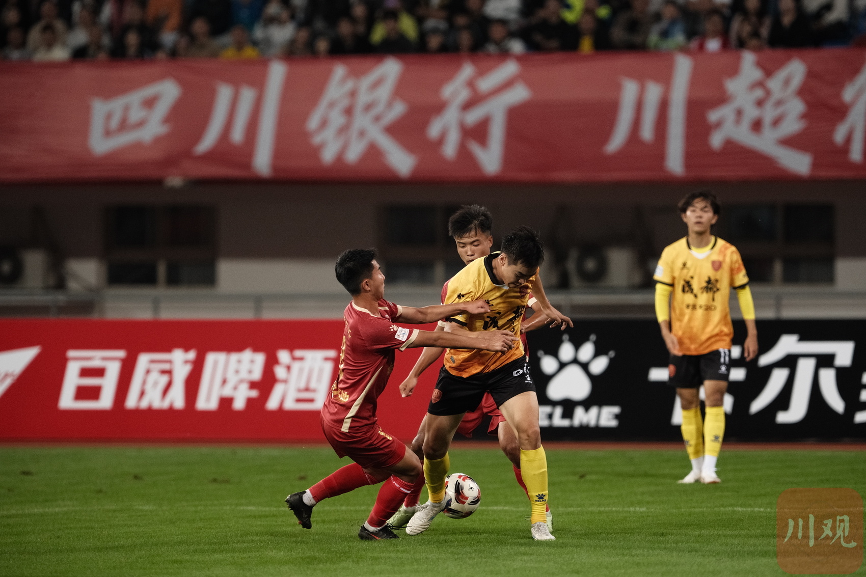 比赛开场仅6分钟,刘毅飞便头球破门为成都队首开纪录。第28分钟,37岁老将黄鹤冷静施射再下一城。全场比赛成都队占据压倒性优势,终场前通过角球锁定胜局,以四战全胜的战绩领跑积分榜。