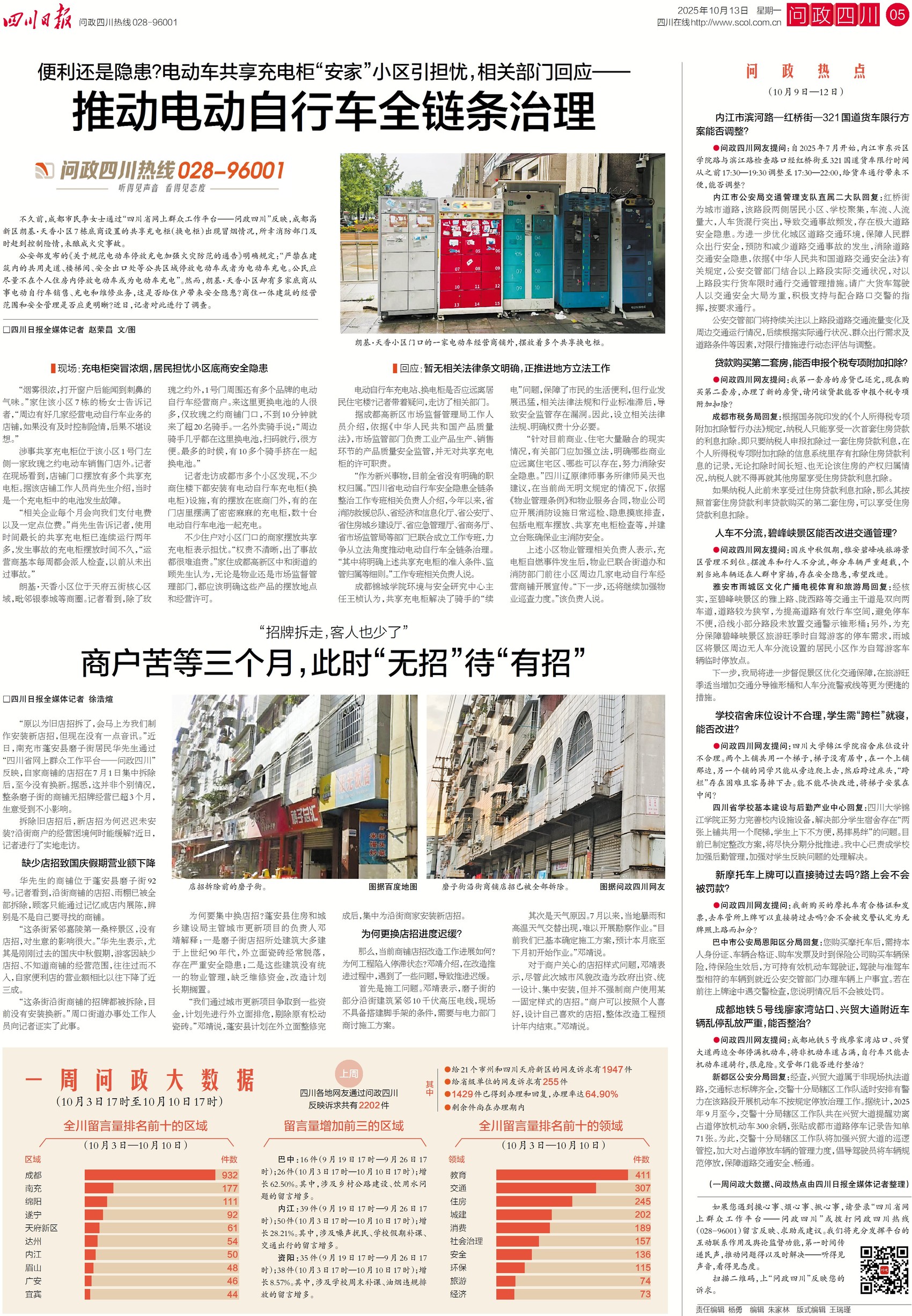 近日,成都高新区一小区底商设置的共享充电柜发生冒烟险情,引发居民对商住楼电动自行车经营业务安全性的担忧。记者调查发现,目前该领域还是“监管空白区”。好消息是,相关部门正推进地方立法,将明确共享充电柜准入条件和监管细则。具体如何弥补共享充电柜监管存在的安全漏洞,请关注今日5版了解详情。