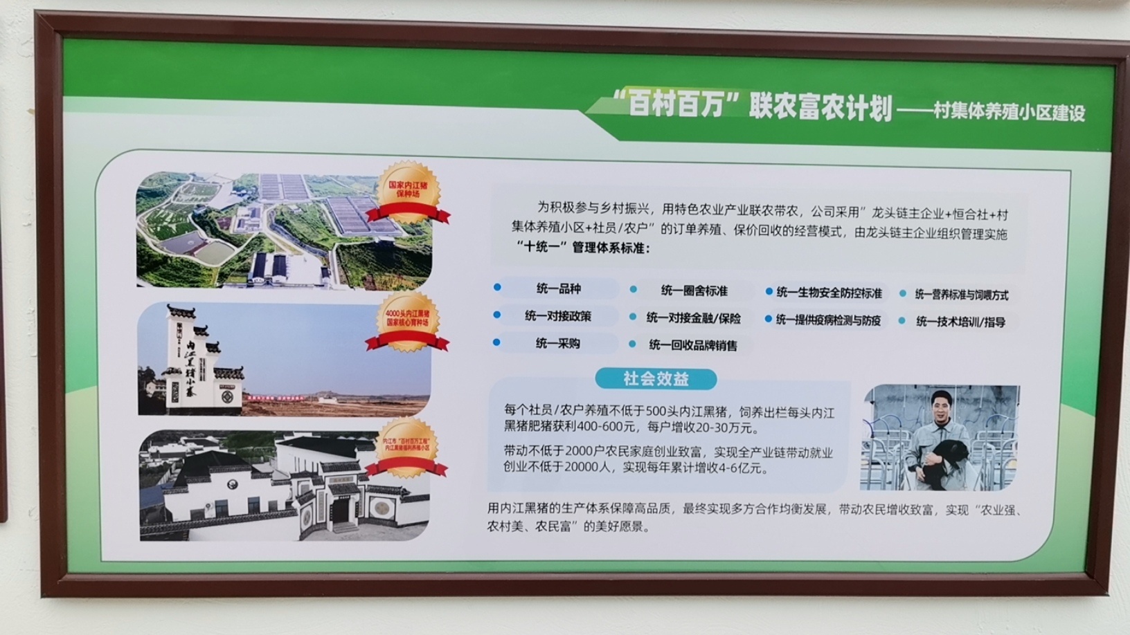 9月中旬,内江市印发了《内江市落实新型城镇化战略促进城镇化高质量发展行动方案》,要求用好内江黑猪等特色农产品资源,带动农村劳动力本地转移就业。依托前期实施的“百村百万”联农助农计划等相关举措,内江市正不断提高农民增收底色。该计划采用订单饲养模式,可解决养殖户在饲养、防疫、销售等方面的顾虑。