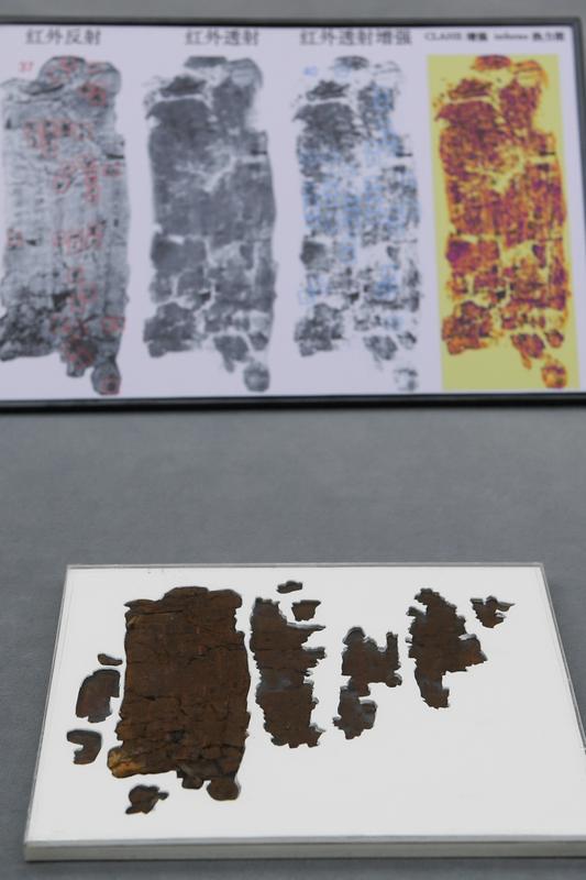 这是10月13日在湖南省博物馆拍摄的部分长沙子弹库战国帛书。