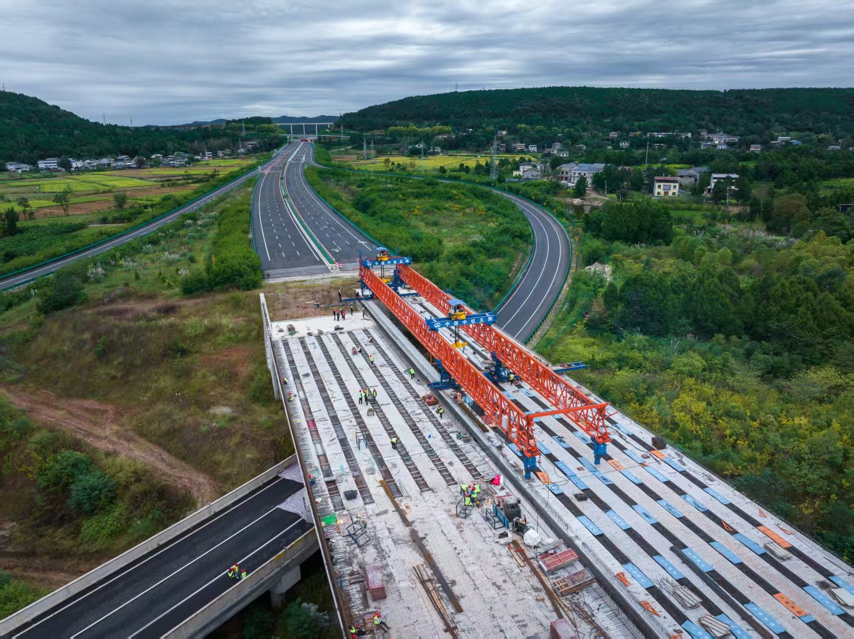 广绵扩容工程绵阳段架梁贯通。 中铁五局供图