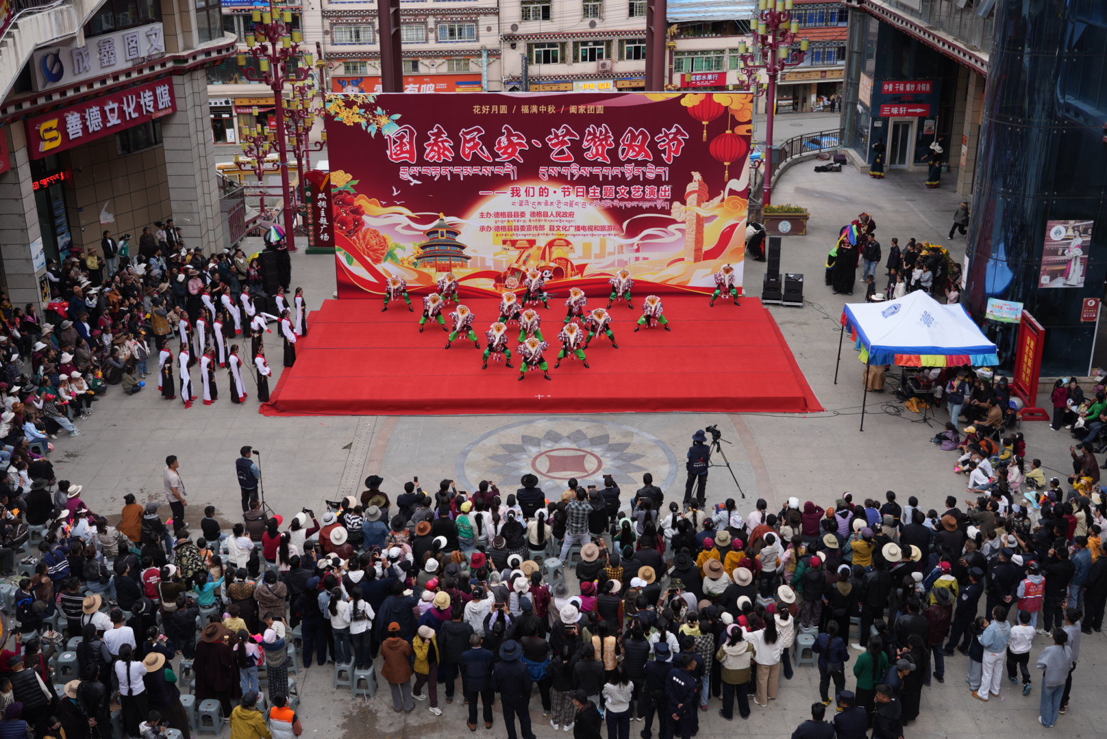 做好服务保障的同时,德格县深挖文化内核,打造特色主题活动。10月4日,康巴文化广场举办“国泰民安·艺赞双节”文艺演出,非遗舞蹈、红色朗诵等12个节目展现本土魅力;印经院核心广场同步开展“国庆文旅融·书香进景区”活动,30余个展架陈列500余册书籍,两场活动吸引1300人次参与,让游客沉浸式感受文化温度。