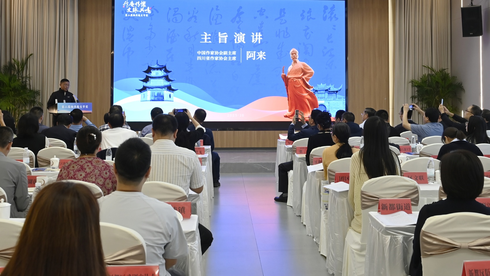 10月13日,第二届“杨升庵文学奖”揭晓。此前一天,杨慎研究成果交流活动在成都市新都区举行。活动云集四川、云南两地升庵文化研究学者,还邀请了阳明文化研究学者,展现开明治学、视野阔大的文化气象。