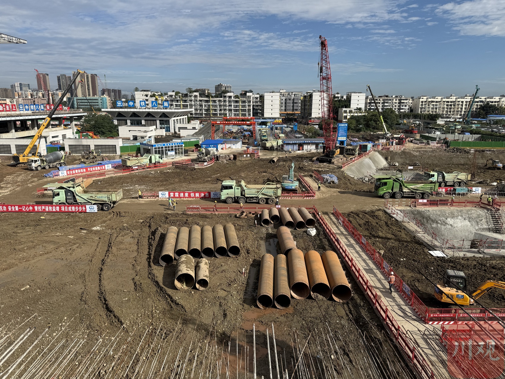 四季度伊始,成都站(火车北站)扩能改造工程现场一片繁忙景象。上千名建设者协同奋战,推土机、挖掘机等30余台大型设备轰鸣不息,高耸的塔吊挥动巨臂,数十辆运载车如织穿梭。10月13日上午,“万千气象看四川”四季度集中采访活动在此启动。据介绍,成都火车站扩能改造工程共分为三个建设阶段,目前已完成前两阶段任务,进入第三阶段施工,预计2027年建成投运,将与成渝中线高铁同步开通。