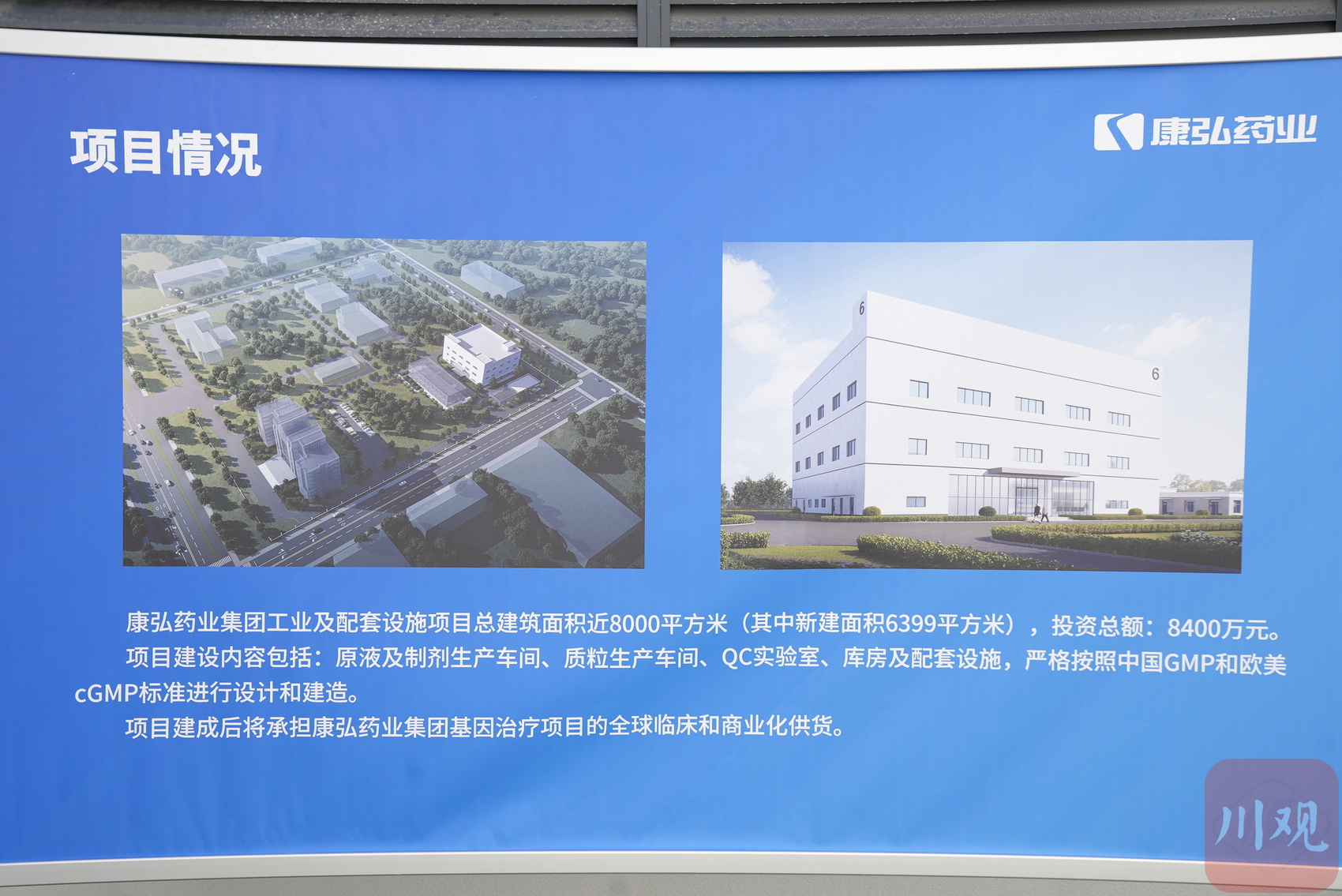 作为成都市金牛区盘活存量工业用地、培育新质生产力的重点项目,康弘药业基因药物生产基地项目占地面积38亩,建设质粒生产车间、原液及制剂生产车间,以及匹配了实验室、配电房等,设计年产能为10万支。项目今年2月7日开工建设,已于8月29日通过验收,总投资8000余万元。
