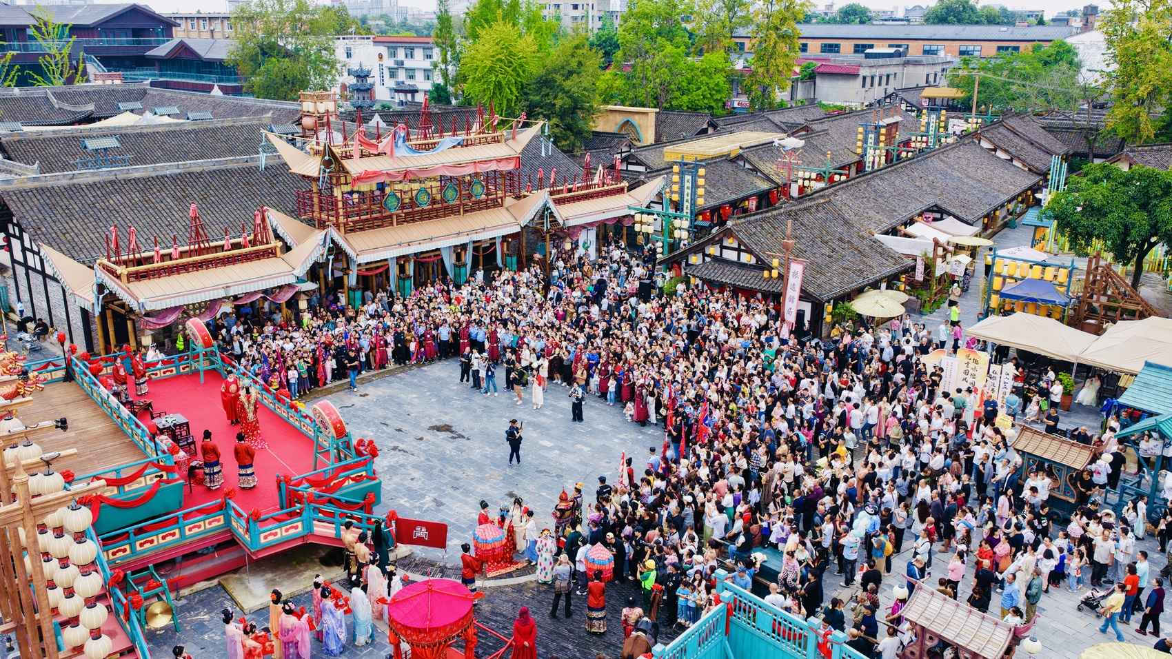 “文旅+赛事”——绣川广场接连举办第八届TST国际街舞邀请赛和“天府令”英雄大会争霸赛,动感的街舞与拔河、跳绳等体育项目交织,营造出古今交融的节庆氛围。