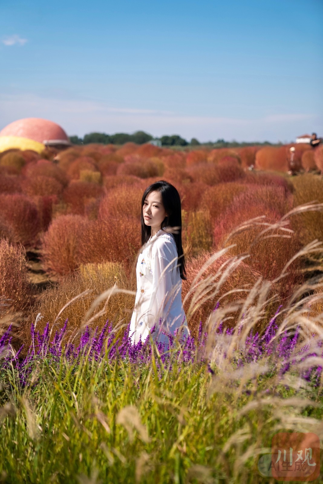 当你还沉浸在地肤草带来的温暖与治愈时,只需一个转身,便会偶遇一片浩瀚的粉黛花海,如烟似雾的粉紫色,构成了秋日最轻柔的背景。行走其间,衣角会沾染上秋天的温柔。在这里最适合停下脚步,闭上眼睛,感受阳光与花香在脸颊上留下的轻吻。
