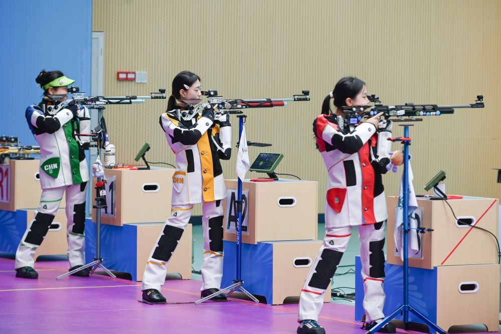 ▷14日,参加十五运会射击比赛的奥运冠军们开始收获金牌。江苏队盛李豪在男子10米气步枪个人赛中强势夺冠,老将李越宏率领的山东队在男子25米手枪速射团体比赛中逆转摘金,浙江“天团”则有惊无险地卫冕女子10米气步枪团体。