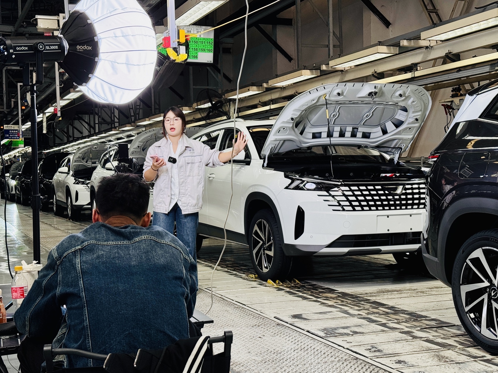 而让记者觉得最动人的一幕,不是高速运转的全自动化生产线,而是在规律作响的生产线旁,一位员工正对着手机屏幕热情地直播卖车。这看似微小的场景,却是此次升级最生动的注脚——智能制造提升的是生产的“效率”,而将直播间搬进车间,则是在重塑连接用户的“场景”。