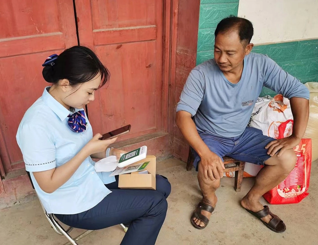 邮政员工上门为果农办理“扫码付”业务
