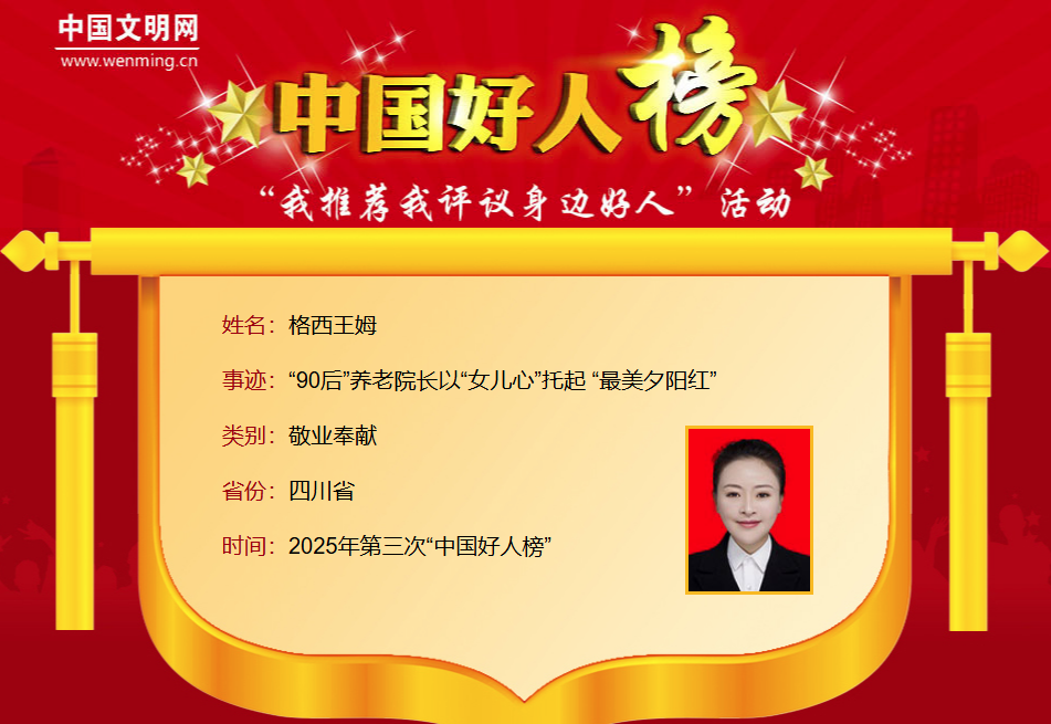 在海拔约2600米的阿坝藏族羌族自治州马尔康市老年养护院,“90后”藏族姑娘格西王姆是63名高龄老人的“大家长”。16年间,她从普通护理员成长为院长,始终把老人的需求放在首位,带老人们办时装秀、拍抖音、开辟小菜园,让老人们的晚年生活“热气腾腾”。曾有企业抛出高薪橄榄枝,她婉言谢绝,只因“离不开这些老人”。作为全国人大代表,她还倡导更多年轻人加入养老事业,让老年人生活得更舒心舒适。