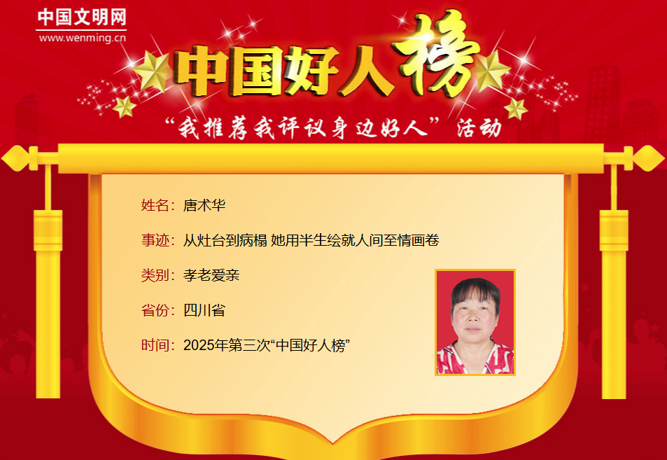 10月15日,2025年第三次“中国好人榜”发布仪式暨全国道德模范与身边好人现场交流活动在新疆维吾尔自治区阿克苏地区举行。四川此次共有3人荣登2025年第三次“中国好人榜”,分别是关祖苹、格西王姆、唐术华三位“中国好人”。