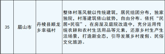 其中,眉山市丹棱县顺龙乡幸福村成功上榜,也是眉山唯一上榜案例。
