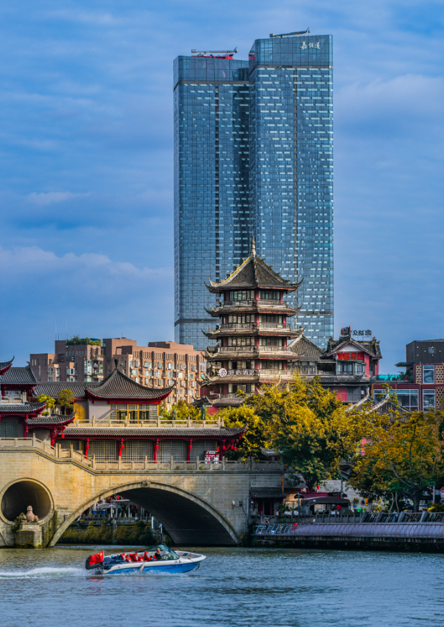 锦江古今画:古桥高楼共秋色 作者:安咏涛 年龄:55岁