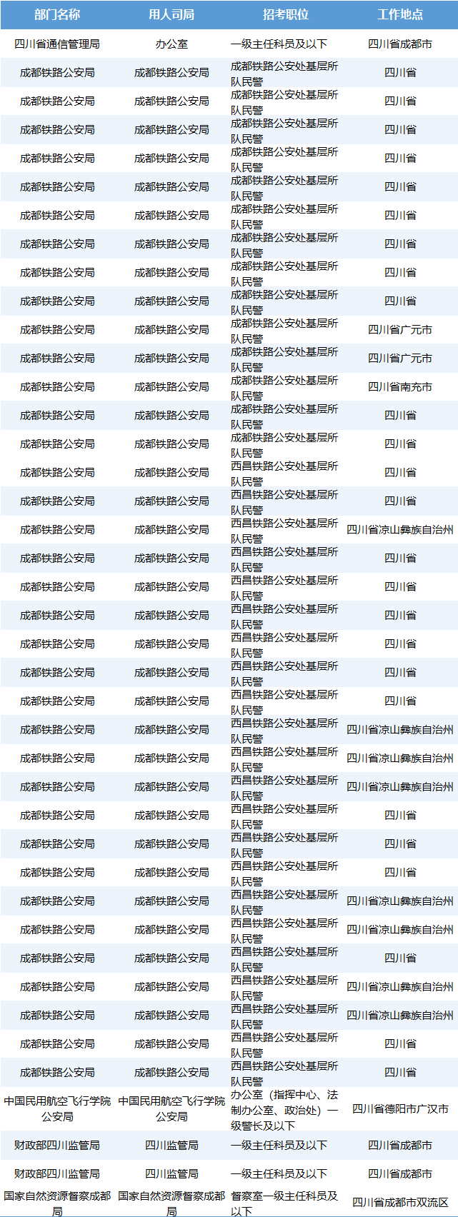 本次中央机关及其直属机构2026年度考试录用公务员报名,共计划招录3.81万人。根据招考简章,四川省通信管理局、成都铁路公安局、财政部四川监管局等部门均有四川相关职位。
