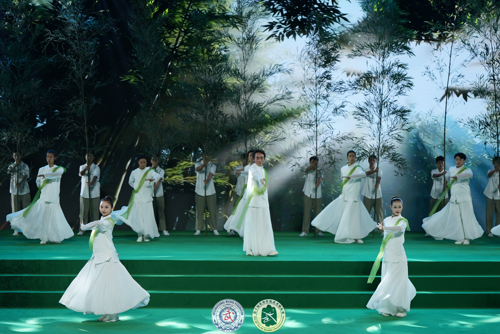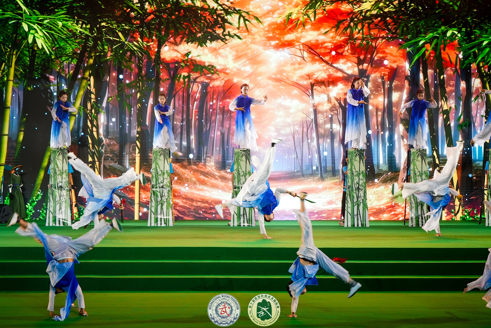 开幕式上,以茶艺、非遗武术为代表的传统文化与以智能机器人为代表的新潮技术同台演绎,在全球传统武术爱好者面前开启文化与科技的“对话”,助力中国传统武术精神实现跨界传承与交融。峨眉女子功夫团现场上演《丹凤朝阳》,展现传统武术在新时代的蓬勃生机。同时,影视演员吴京被国际武联授予国际武术形象大使,活动现场与上一任形象大使李连杰“交棒”。