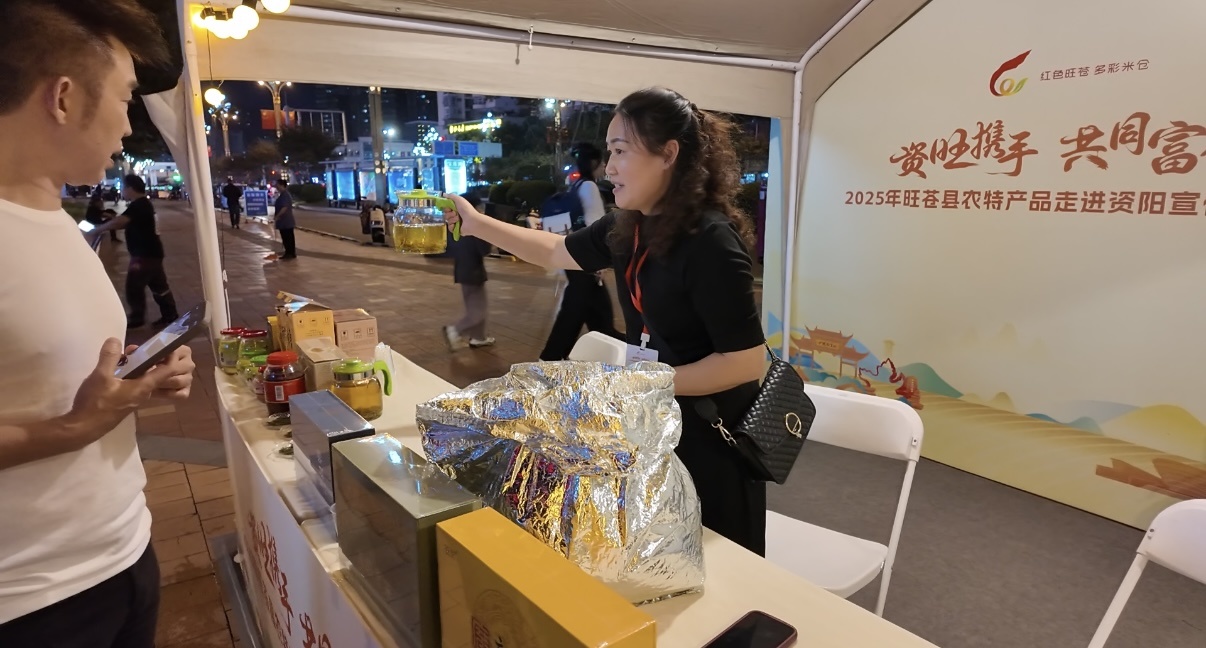10月16日,资阳—旺苍2025特色产品展示展销推广活动在资阳万达广场举行,吸引了大批市民驻足选购。